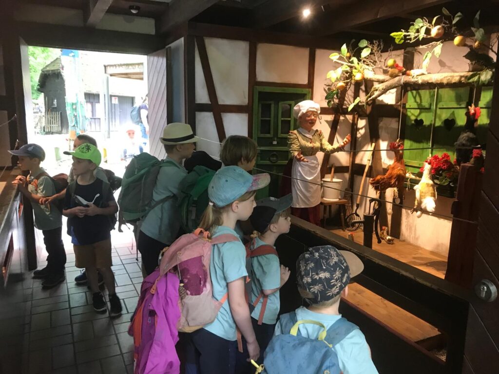 In dieser Woche tauchten die Waldkinder noch einmal in die zauberhafte Welt der Märchen ein. Das Thema Märchen hat uns durch das ganze Kindergartenjahr begleitet und war auch das Motto unserer Faschingsfeier. Nun wartete noch ein besonderes Highlight auf die Kinder: Sie durften mit dem Reisebus einen Ausflug nach Ludwigsburg in den Märchengarten machen! Aufgeregt und voller Vorfreude haben sie sich morgens am Feuerwehrspielplatz in Steinach getroffen. Nach einer Runde Spielen und Toben kamen alle zu einem kurzen Morgenkreis zusammen und dann startete das Abenteuer. Im Blühenden Barock angekommen bestaunten sie als erstes die beeindruckenden Fasane in den Vogel-Volieren und die Skulpturen der Sand-Kunst-Ausstellung. Schließlich erblickten sie das Tor des Märchengartens. Begeistert fuhren sie mit den Booten, entdeckten nach und nach die Märchen, schauten in den Frau-Holle-Brunnen, fütterten den Papierdrachen mit Papier und freuten sich über sein „Danke!“