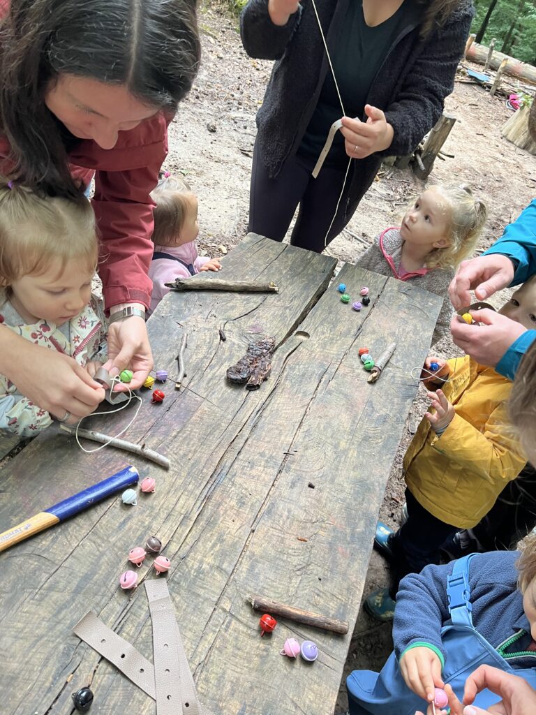 Nachdem wir die unterschiedlichen Geschmäcker entdeckt hatten, widmeten wir uns unseren Ohren. Was können wir alles hören? Um das zu verdeutlichen, durften die Kinder bunte Glöckchen an Schellenbänder befestigen und so das Hören musikalisch erleben.