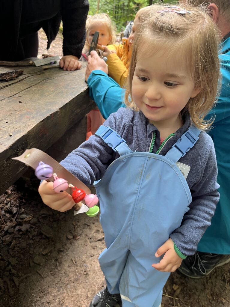 Mit allen Sinnen den Wald entdecken – Teil 1. Den Morgenkreis starteten wir mit einem Gedicht zum Thema „Fünf Sinne“, um die Kinder auf das Thema einzustimmen. Gemeinsam überlegten wir, mit welchen Körperteilen wir riechen können und welche Gerüche uns bekannt sind. Dann durften die Kinder mit geschlossenen Augen in zwei Gläschen schnüffeln und raten, was darin ist. Das war für die Kinder gar nicht so einfach, aber gemeinsam haben wir es schließlich geschafft, beide Gerüche zu erkennen.
